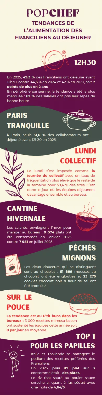 Popchef, cantine d’entreprise nouvelle génération en Île-de-France, dévoile les habitudes alimentaires des franciliens à l’heure du déjeuner.